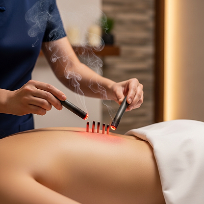With non-scarring moxibustion, the moxa is placed on the point and lit, but is extinguished or removed before it burns the skin.